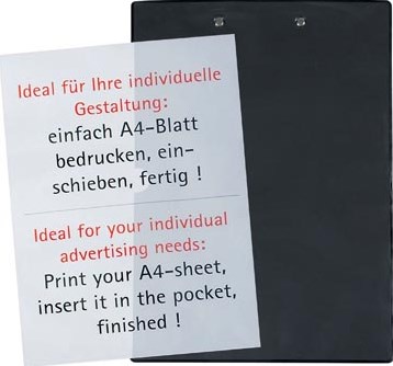 Klemplaat Maul A4 zwart met transparante tas 1 stuk zilver
