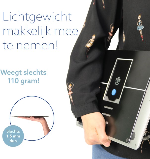 Deze ergonomische laptopstandaard is voorzien van 4 standen. Deze standen zorgen ervoor dat je je laptop op de ideale ooghoogte kunt zetten waardoor je geen last krijgt van rug en schouder klachten.