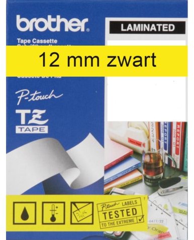 LABELTAPE BROTHER TZE-231 12MMX8M WIT/ZWART 1 Stuk