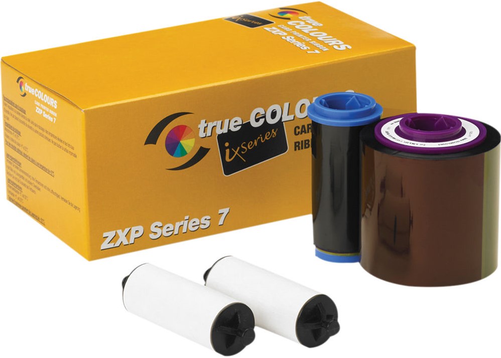 Zebra inktlint om in vier kleuren zelf pasjes met overlay te printen.