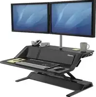 Ergonomisch werken door je eigen bureau in een zit sta bureau om te toveren met de zit sta verhogeren van Fellowes. Deze verhoger is instelbaar van een zit positie tot een staande positie. Een draadloze lader en usb poorts zijn geïntegreerd in het platform.