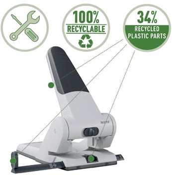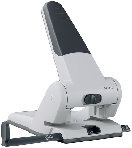 Dikke stapels papier gemakkelijk perforeren. De Leitz perforator voor zwaar werk perforeert tot 65 vel ineens. Met de grote handgreep wordt het perforeren van een dikke stapel papier een fluitje van een cent.