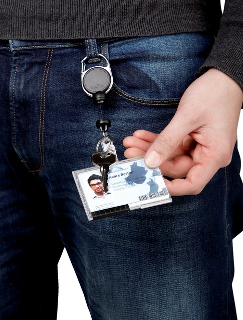 Handig afrolmechanisme voor zware kaarthouders en sleutels