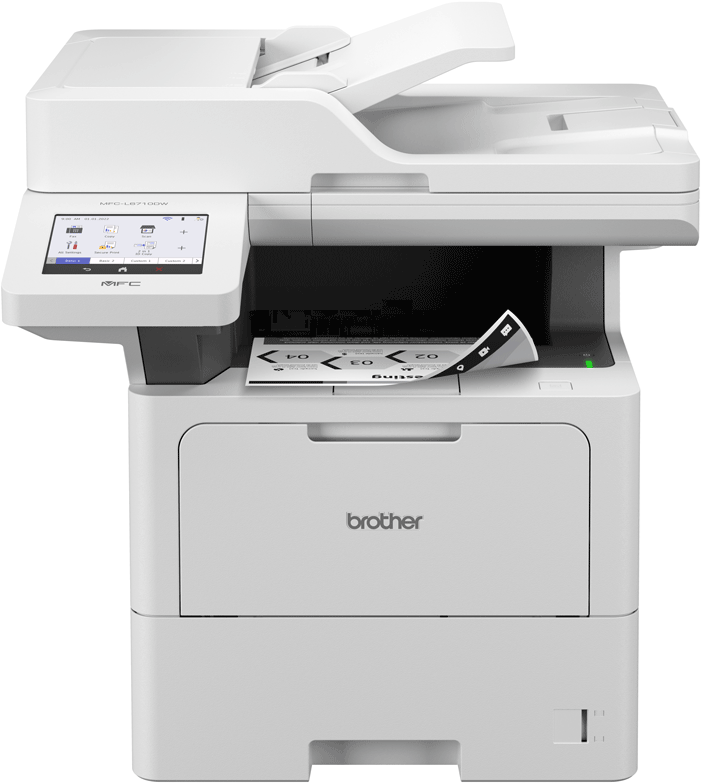 Deze Brother multifunctionele printer is speciaal ontworpen voor werkgroepen die functionaliteit en veiligheid eisen en hoge volumes in zwart wit moeten printen. De MFC L6710DW print razendsnel met 50 afdrukken per minuut en is geschikt voor het printen tot wel 16.000 afdrukken per maand. De MFC-L6710DN heeft een grote papierlade van 520 vel en is uitbreidbaar tot maximaal 3 papierladen om de papiercapaciteit aan te passen aan de behoeften van je bedrijf. De krachtige dubbelzijdige kleurenscanner scant tot 80 vellen ineens vanuit de automatische document feeder en kan scannen naar vele bestandsformaten. Scan eenvoudig naar de cloud, een werkmap of email en bedien de scanner vanaf het grote 17,8cm kleuren touchscreen. Met de meegeleverde Kofax Paperport SE14 software kun je PDF's converteren naar OCR, Word of Excel bestanden en meer. Deze printer is ideaal voor kleine en middelgrote bedrijven die tot 8.000 afdrukken per maand printen en uitsluitend in zwart wit printen.