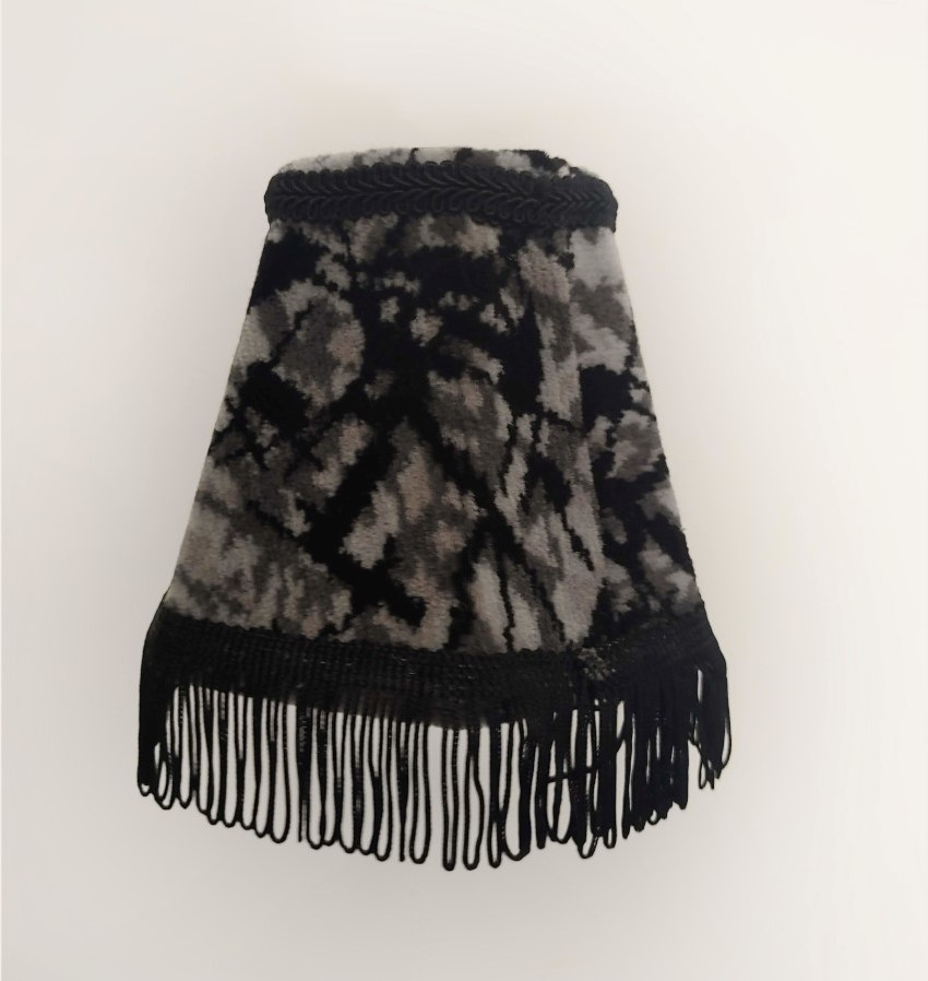Dashboardlamp rond grijze pluche met zwarte flossen