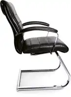 Luxe bezoekersstoel met zwart leder bekleed. Door de gestikte naden in de zitting en de rugleuning ziet de stoel er fraai uit en past deze stoel prima in een luxe directiekantoor.