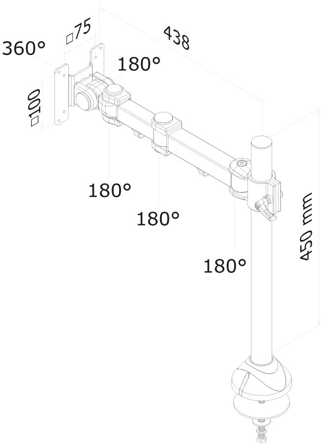 • Beweging: kantelen ±180°, zwenken ±180°, rotatie 360°