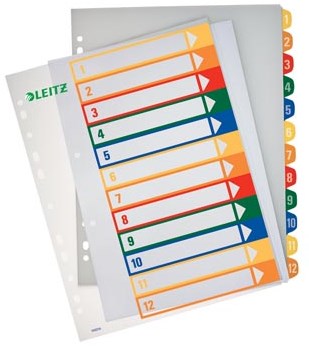 Deze tabbladen zijn printbaar in A4 extra breed formaat. Het zorgt voor snelle toegang, zelfs bij gebruik van showtassen. De genummerde tabs van 1-12 tabs maakt sorteren makkelijk.