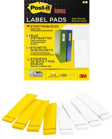 Stel een vraag over MEMOBLOK 3M POST-IT LABEL 2900 15.8X57.1MM GEEL/WT 200 Stuk