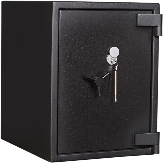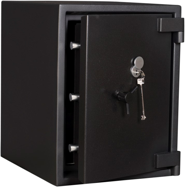 De wanden en deur zijn dubbelwandig uitgevoerd en de scharnieren zijn uitwendig waardoor de deur 180° geopend kan worden. Er zijn diverse afmetingen in deze serie waardoor je altijd de geschikte kluis kan vinden.