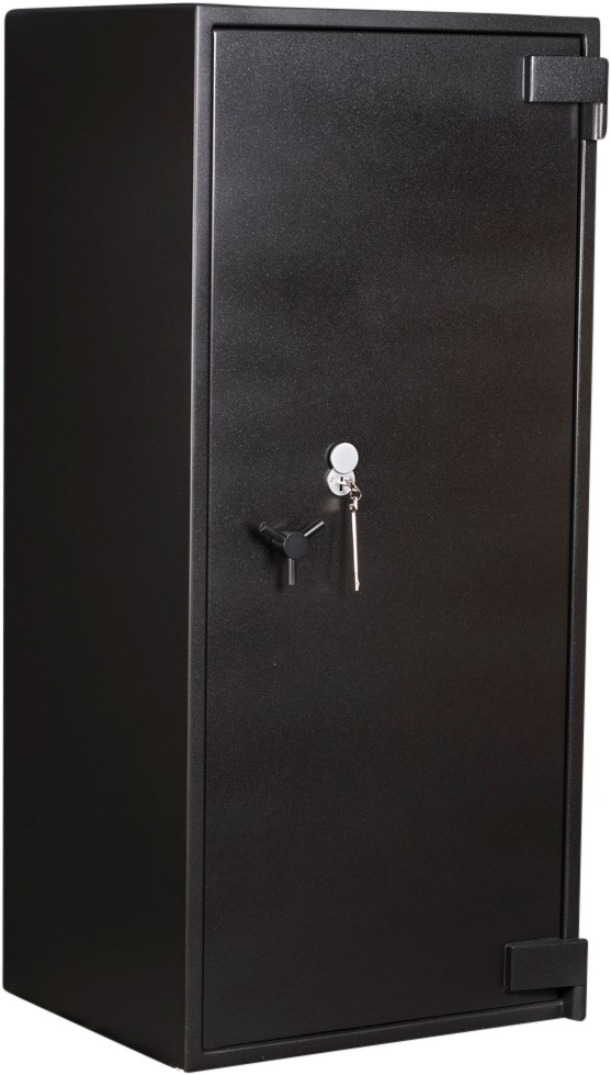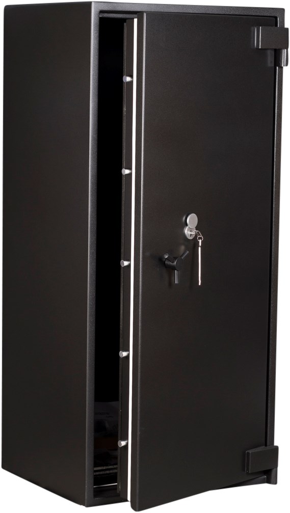 De wanden en deur zijn dubbelwandig uitgevoerd en de scharnieren zijn uitwendig waardoor de deur 180° geopend kan worden. Er zijn diverse afmetingen in deze serie waardoor u altijd de geschikte kluis kan vinden.