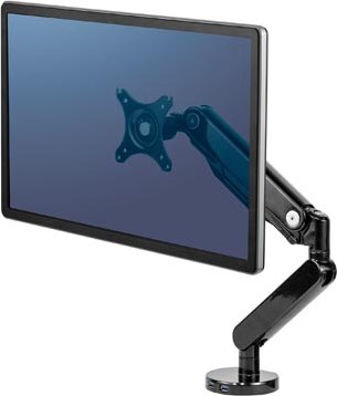 Met de Fellowes Platinum monitor arm bevestig je één beeldscherm aan het bureau met een bladklem. Door gebruik te maken van een monitor arm profiteer je optimaal van de mogelijkheden van je monitor. De monitorarm is eenvoudig in hoogte verstellen. Tevens kun je het scherm kantelen, zwenken en roteren. Hierdoor creëer je de ideale ergonomische werkhouding. Dit verkleint de kans op nek, schouder en rugklachten. Kabels zijn netjes weg te werken aan de onderkant van de horizontale arm. De monitor arm heeft 3 draaipunt en is geschikt voor 1 scherm t/m 27 inch. Het draagvermogen van de arm is 9 kg per scherm. Dit product is geschikt voor schermen met een VESA gatenpatroon van 75x75 mm of 100x100 mm.