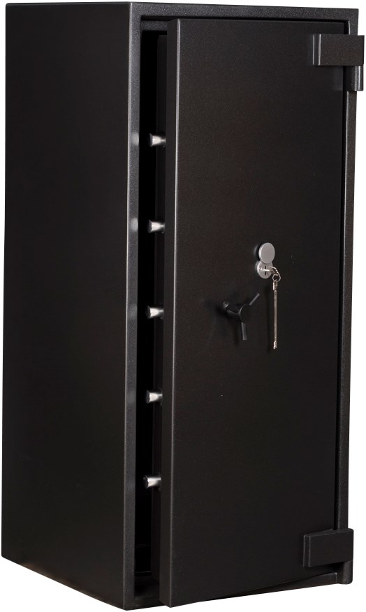 De Raat DRS Euro Defender III serie is een inbraakwerende en brandwerende kluis in één en is NT Fire-017 60P gecertificeerd dit wil zeggen dat de kluis 60 minuten brandwerendheid biedt voor papier. De wanden en deur zijn dubbelwandig uitgevoerd en de scharnieren zijn uitwendig waardoor de deur 180° geopend kan worden. Er zijn diverse afmetingen in deze serie waardoor je altijd de geschikte kluis kan vinden.