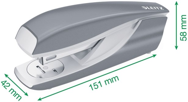 Voor nietjes 24/6 en 26/6 Capaciteit: 30 blad Open en gesloten nieten mogelijk 180°-opening voor speldhechten Met geïntegreerde ontnieter