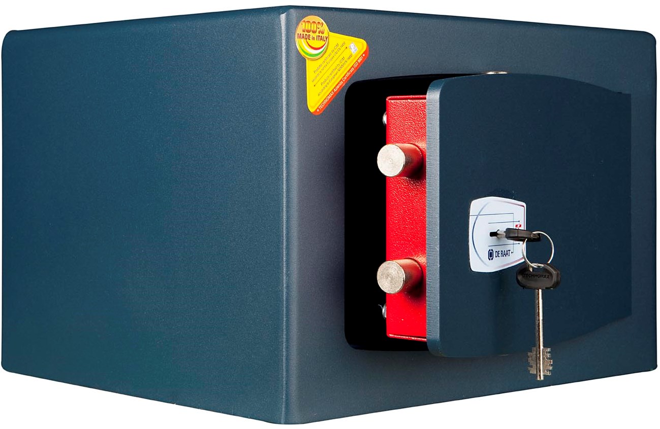 De kluis is voorzien van een dubbelbaard sleutelslot (2 sleutels meegeleverd)
