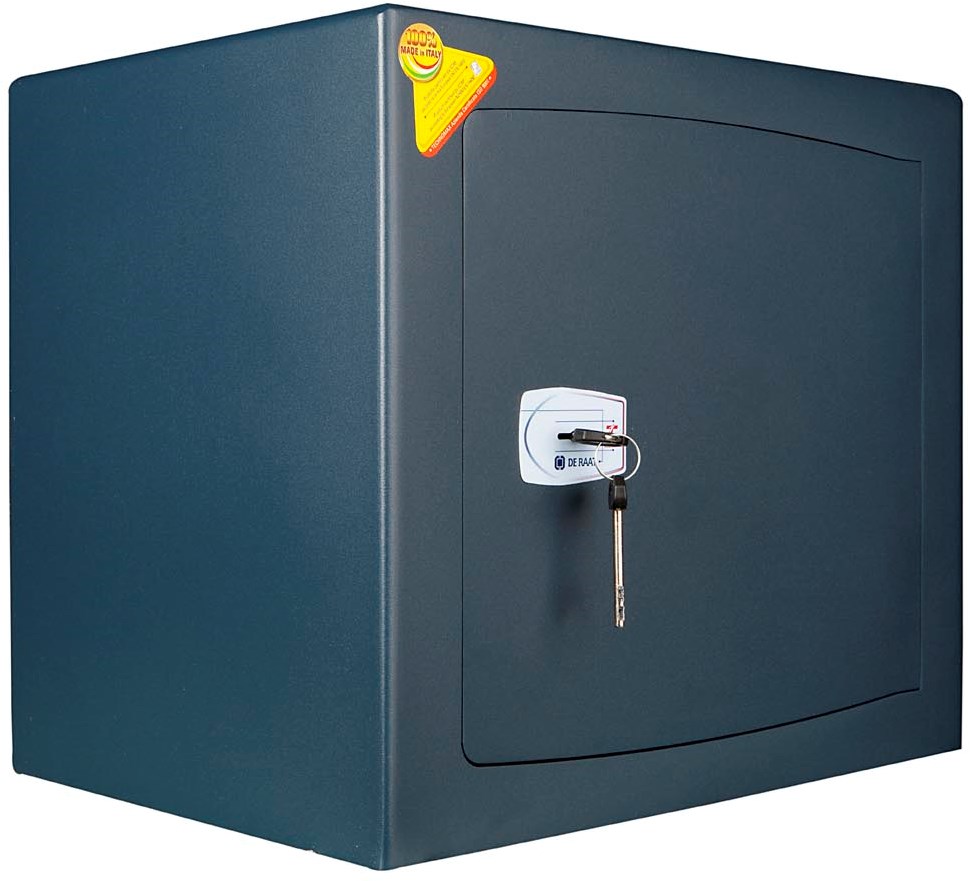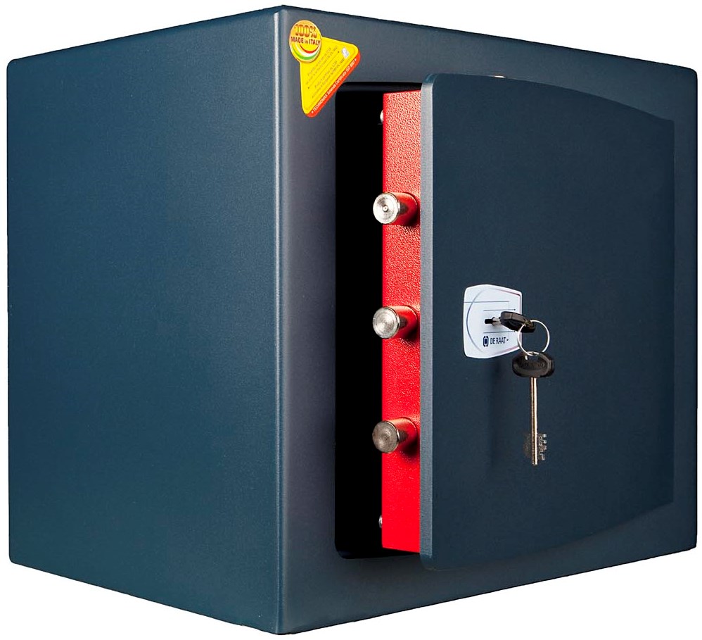 De kluis is voorzien van een dubbelbaard sleutelslot (2 sleutels meegeleverd)
