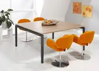 Een vierkante tafel in je vergaderruimte of entree is een heerlijk ruime tafel om aan te vergaderen of te lezen. Met de stevige in hoogte verstelbare poten heeft de tafel een industriële uitstraling. Dit is een geschikte vergadertafel voor 8 personen. De stoelen passen gemakkelijk tussen de poten, ook brede vergaderstoelen. Dit vierkante bureau is leverbaar in 4 framekleuren en 10 moderne bladkleuren. Voor iedere inrichting een eigen stijl!