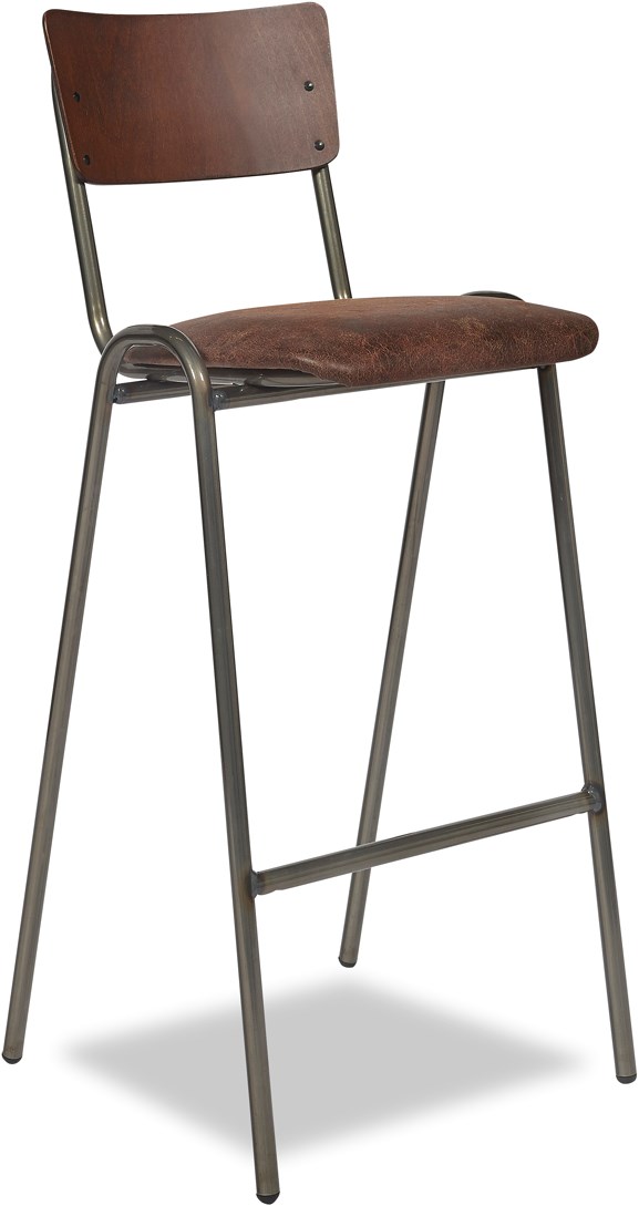 Stoere barkrukken met een industriële retro uitstraling, perfect voor aan een hoge tafel, bartafel, bar of keuken. Deze barkrukken combineren een stevig stalen frame met een multiplex rugleuning en een comfortabele zitting in vintage kunstleer.