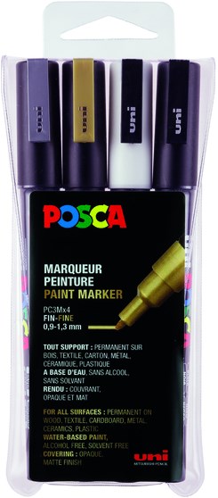 Posca verfstiften PC-3M etui van 4 stuks in geassorteerde kleuren zwart