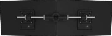 Modulaire en circulaire crossbar voor 2 monitoren. Specificaties: Model: Monitorarm Scherm diagonaal: 26 / 24"" wide-screen (2x) Bureaumontage: 2-in-1: houder (0-55 mm): bureauklem (standard), diameter van de houder (Ø 60, 80) VESA: 75x75 mm en 100x100 mm Kantelen: 40° Roteren: 360° Zwenken: 180° Productmateriaal: Aluminium Kleur: Mat zilver Serie: Zepher""
