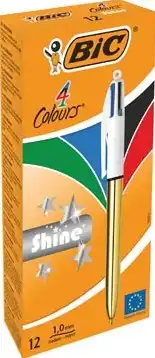 De Bic balpen 4 kleuren heeft 4 kleuren die je gemakkelijk kan instellen. Door de kleur die je wil naar beneden te schuiven komt de kleur die je wil tevoorschijn.