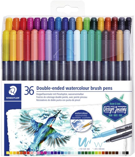 Staedtler brushpen Aquarel duo doos van 36 stuks in geassorteerde kleuren