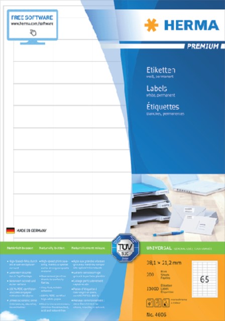 Stel een vraag over Etiket HERMA 4606 38.1x21.2mm premium wit 13000stuks