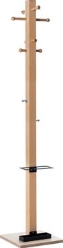8 haken in stevig gelakt beukenhout: zorgen voor stabiliteit en capaciteit voor veel jassen 2 haken in chroom (voor handtassen en andere tassen) Met paraplustandaard die tot 6 paraplu's kan dragen Inclusief wateropvangbak die makkelijk gereinigd kan worden Buis uit massief gelakt hout, dwarsdoorsnede 60 x 60 mm Basis uit multiplex, dwarsdoorsnede 35 x 35 cm, dikte: 20 mm, zorgt voor perfecte stabiliteit Makkelijk te monteren Hoogte: 178 cm