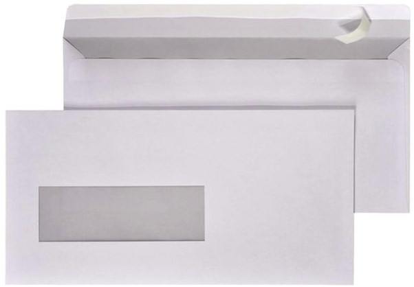 Envelop met venster links Hermas 110x220mm met plakstrip doos van 500 stuks wit
