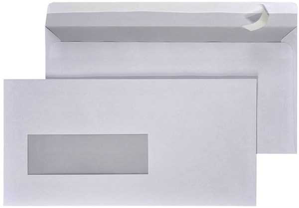 Envelop met venster links Hermes 110x220mm met plakstrip doos van 500 stuks wit