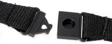 Voorzien van een metalen karabijnhaak en kunststof veiligheidssluiting