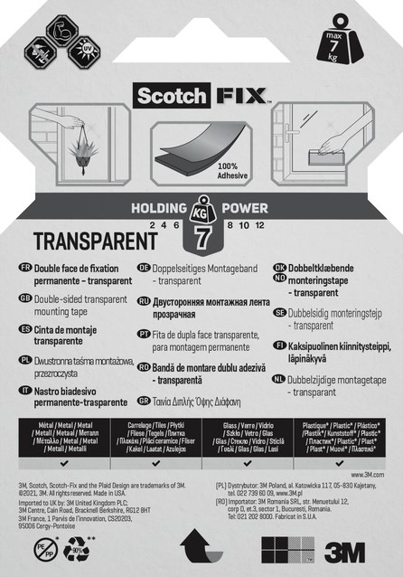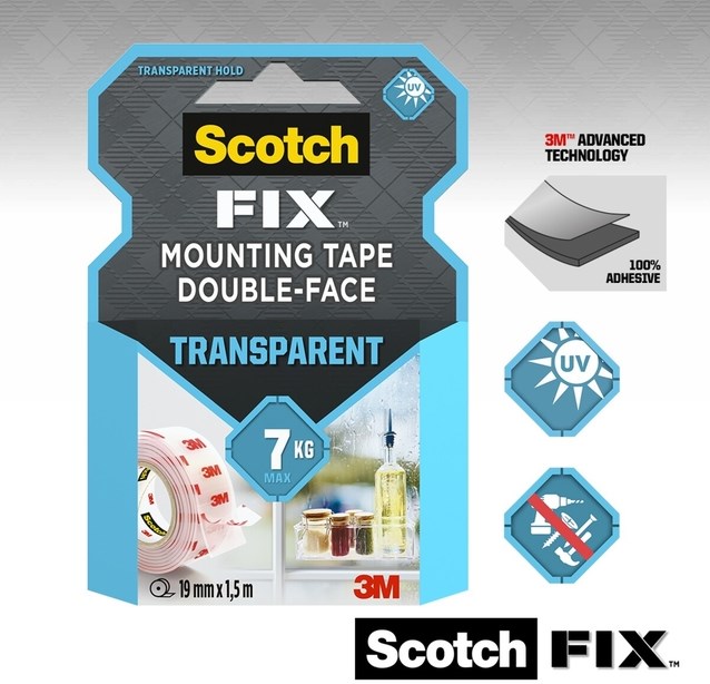 Dubbelzijdige plakband Scotch montage 19mmx1.5m transparant