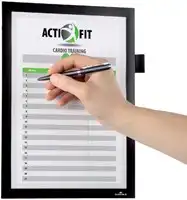 Met het Duraframe Note zelfklevend informatiekader kun je eenvoudig A4 documenten ophangen en direct aantekeningen maken. Dit kader is ideaal om informatie op een duidelijke manier te tonen. Dankzij de magnetische rand vervang je documenten snel en eenvoudig. Het is geschikt voor alle effen en gladde ondergronden, zoals glas. Gebruik het voor reinigingsschema's in toiletten, registratie bij evenementen of om werkschema's en diensten te tonen. Je kunt het document direct beschrijven en het kader biedt ruimte voor maximaal 5 A4 bladzijden van 80 grams papier. Het is voorzien van een universele penhouder en kan zowel staand als liggend worden gebruikt.