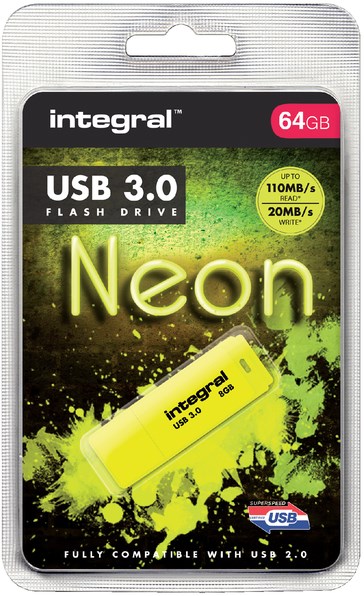 USB-stick 3.0 Integral 64GB neon geel