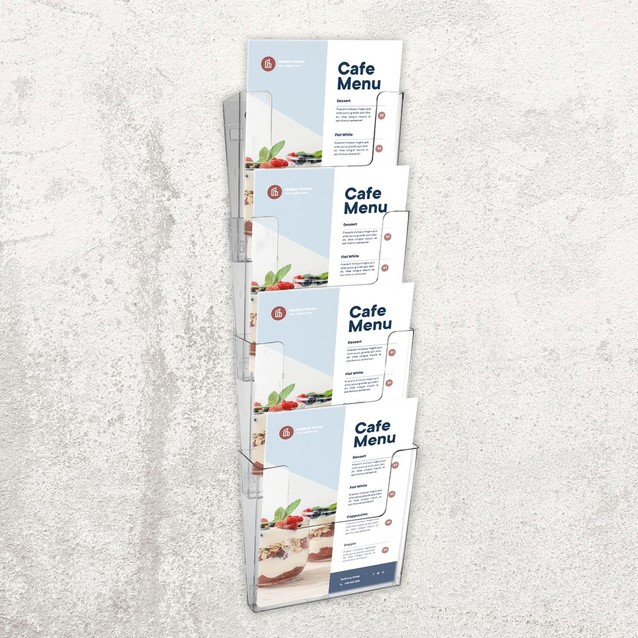 Specificaties Folderhouder Europel 4 x A4 wand staand koppelbaar transparant