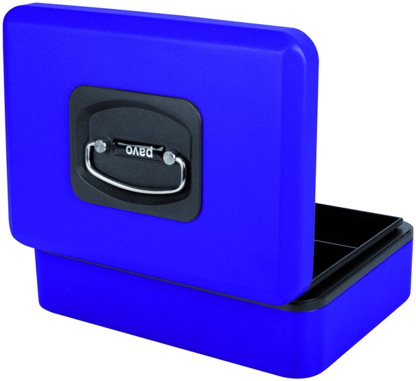Stel een vraag over Geldkist Pavo Deluxe 250x180x90mm blauw