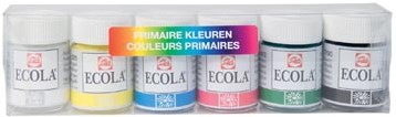 Talens Ecola plakkaatverf potje van 16 ml etui met 6 potjes in geassorteerde kleuren