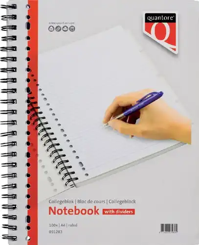 Collegeblok Quantore A4 23-gaats 4 tabs lijn 100vel