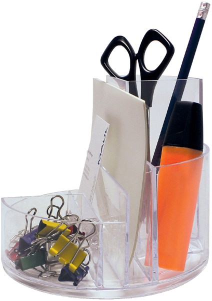 Met de echte classic bureauorganiser van Maul heb je altijd een opgeruimd bureau. De pennenbak bestaat uit zes kokers in verschillende hoogtes en verschillende doorsnedes. In het midden van de ronde vorm is een dwars vak voor brieven of je notitieboekje. Het pennenbakje is natuurlijk ook te gebruiken als organiser in de keuken, magazijn of in de werkplaats.