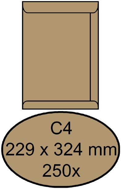 A4 envelop zonder venster Quantore 229x324mm doos van 250 stuks bruin 229 x 324 mm