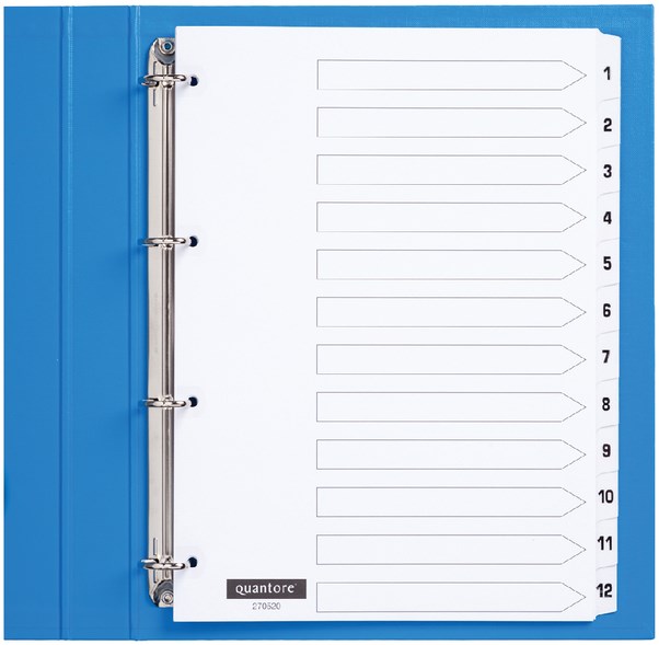 Tabbladen 4-gaats 1-12 genummerd wit karton
