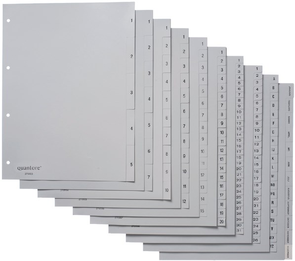 Tabbladen 4-gaats 1-12 genummerd grijs PP