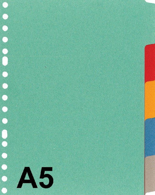 Stel een vraag over Tabbladen Kangaro A5 17-gaats P505M 5-delig assorti karton