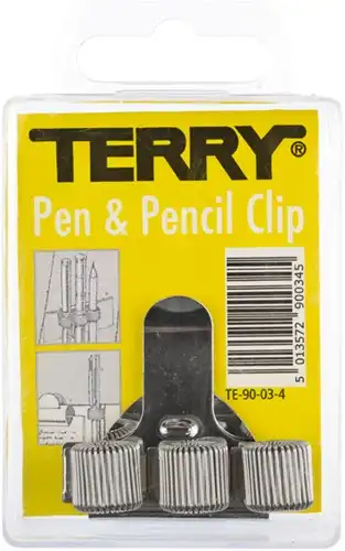Deze zilverkleurige clip is perfect voor iedereen die zijn of haar pennen of potloden altijd binnen handbereik wil hebben. Of je nu op kantoor werkt, studeert of gewoon thuis aan het werk bent, deze clip is een praktische oplossing. Je kunt de clip eenvoudig aan je borstzak, map of klembord klemmen, waardoor je nooit meer hoeft te zoeken naar je schrijfgerei. De Terry Clip is verkrijgbaar met 1, 2 of 3 universele pennenlussen, zodat je altijd de juiste hoeveelheid pennen bij de hand hebt.