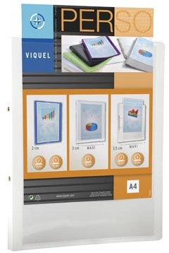 Voor A4 formaat. Rug van 2,5 cm. Uit PP. Met 2 ringen van 20 mm.
