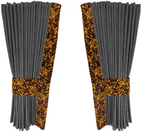Deze zijgordijnen zijn 100% verduisterend en handgemaakt van dubbele alcantara stof met een pluche rand.