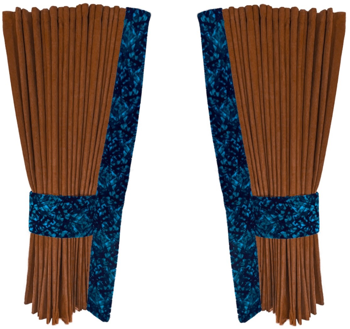 Camelbruine 0047 zijgordijnen met blauwe pluche