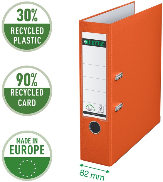 De Leitz ordner 1010 oranje 8 cm rug is perfect voor het opbergen van je dagelijkse documenten. Dankzij de duurzame materialen en een 180°-mechanisme is deze ordner ideaal voor dagelijks gebruik. De sterke PP-kaft en PE-gelamineerd papier aan de binnenkant zorgen voor extra duurzaamheid.