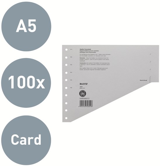Scheidingsbladen Leitz A4 karton 200gr 11-gaats grijs