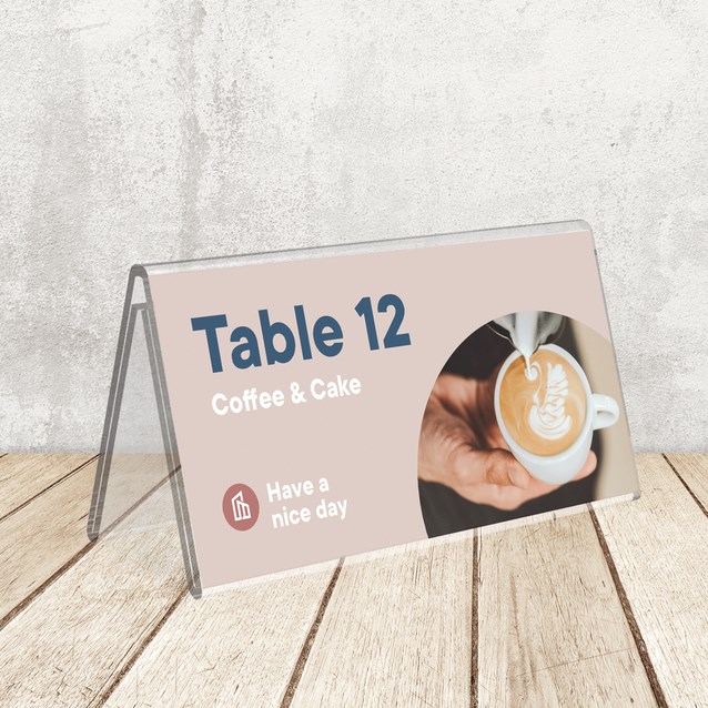 Kaarthouder in dakvorm voor een glasheldere naampresentatie op bureaus, de balie en voor vergaderingen